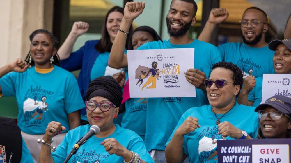 Ladon Love, Executive Director of Spaces in Action DC helped organize a rally on the final day of public hearings of DC’s 2025 with about 200 early childhood educators, parents, and allies. Ladon said, “This is so important. We’re a part of the Under 3…
